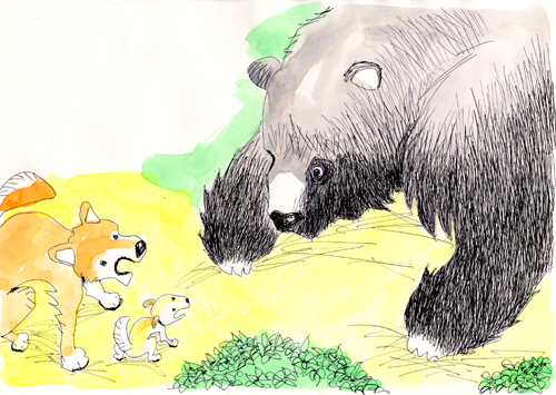 キムンカムイ(くま)に むかって いっしょに ほえたよ。