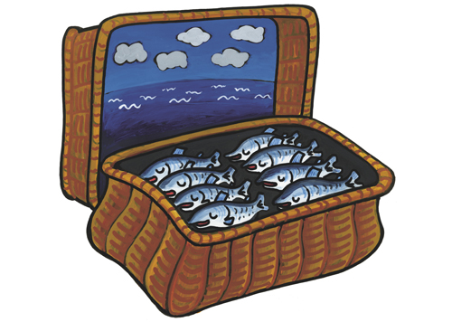 魚(さかな)のカムイ(かみさま)のかごのなか