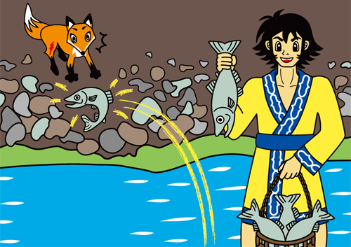 そう おもった カンリリカは じぶんの とった さかなのなかから いちばん おおきなさかなを きつねのほうに なげて あげた。