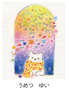 私は、絵本がとても好きです。 ページいっぱいに詰めこまれた、たくさんのかたちと色、ユニークな登場人物、そして、柔らかく、心地よいリズムで流れることばの束を眺めている時、とてもわくわくして、幸せな気持ちになります。 そんな素敵な「絵本」という作品を、いつか自分自身で作り、誰かに 見てもらえたら...と夢を描いていたところに、このような貴重な機会に巡り会うことができ、喜びと、感謝の気持ちでいっぱいです。 この作品を描くにあたり、アイヌに関する文献や、書籍を探していくなかで、アイヌのさまざまな神謡や、昔話を読み、たくさんの個性豊かな神様たちに出会いました。 自然や動植物など、私たちの身の回りにあるものすべてがカムイ(神様)であるという思想のもと、 伝承されてきたそれらのお話からは、自然を敬い、自然と共に生きてきたアイヌの人々の、独特の価値観や文化が感じられました。 この絵本が、子どもたちにとって、アイヌの奥深い世界を知るきっかけのひとつになってくれることを、心から願っています。 最後になりますが、絵本の作成にあたって、お忙しいなか、絵本の作成にあたって、お忙しいなか、時間を割いてご指導・ご協力くださった方々に、深く感謝を申し上げます。ありがとうございました。 |
