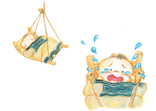 アヤイ(あかちゃん) シンタ(ゆりかご)に のって