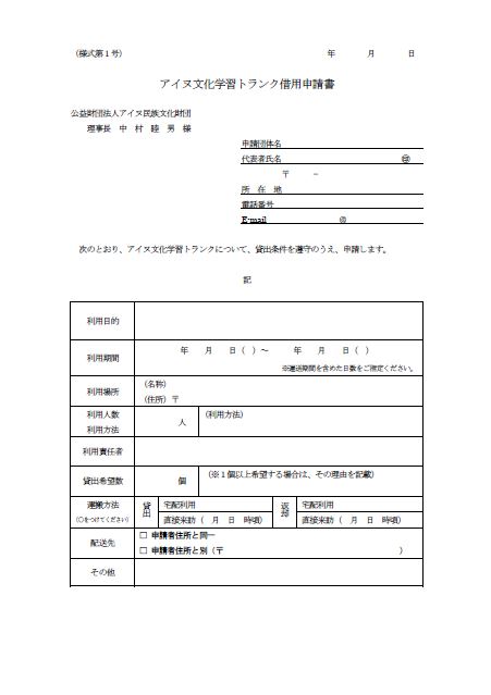 借用申請書到着後、財団から「アイヌ文化学習トランク借用承認書」(参照:)を郵送します。