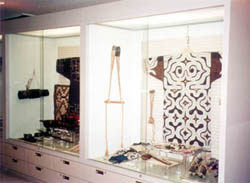 - 展示内容については、文化内容にもとづいたアイヌ史独自の時代区分により、隣接地域の歴史、文化との関連性と文化の移り変わりを考えてもらうことに重点を置きました。また、学習効果を高めるため、展示資料の時代区分ごとの説明に展示自動解説システムを設け、さらに、他の施設の関係資料の所蔵状況や文化伝承活動の情報提供等のためにAVガイドシステムを設置しています。