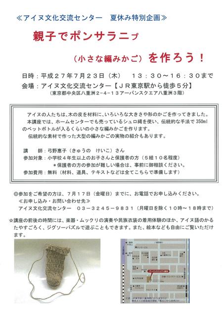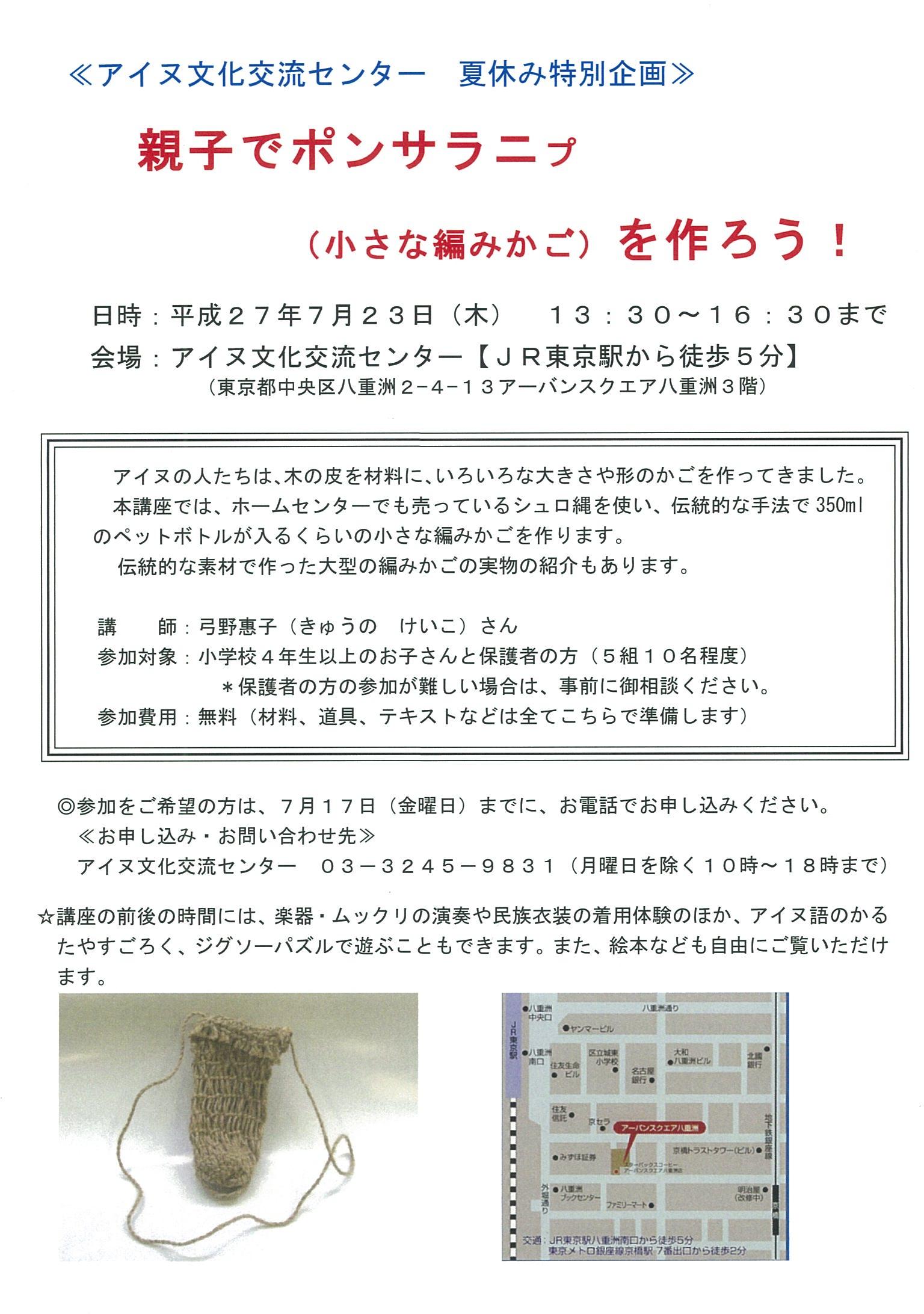- 27年度 第1回《イランカラプテ アイヌ文化体験講座のご案内》(平成27年7月23日)
